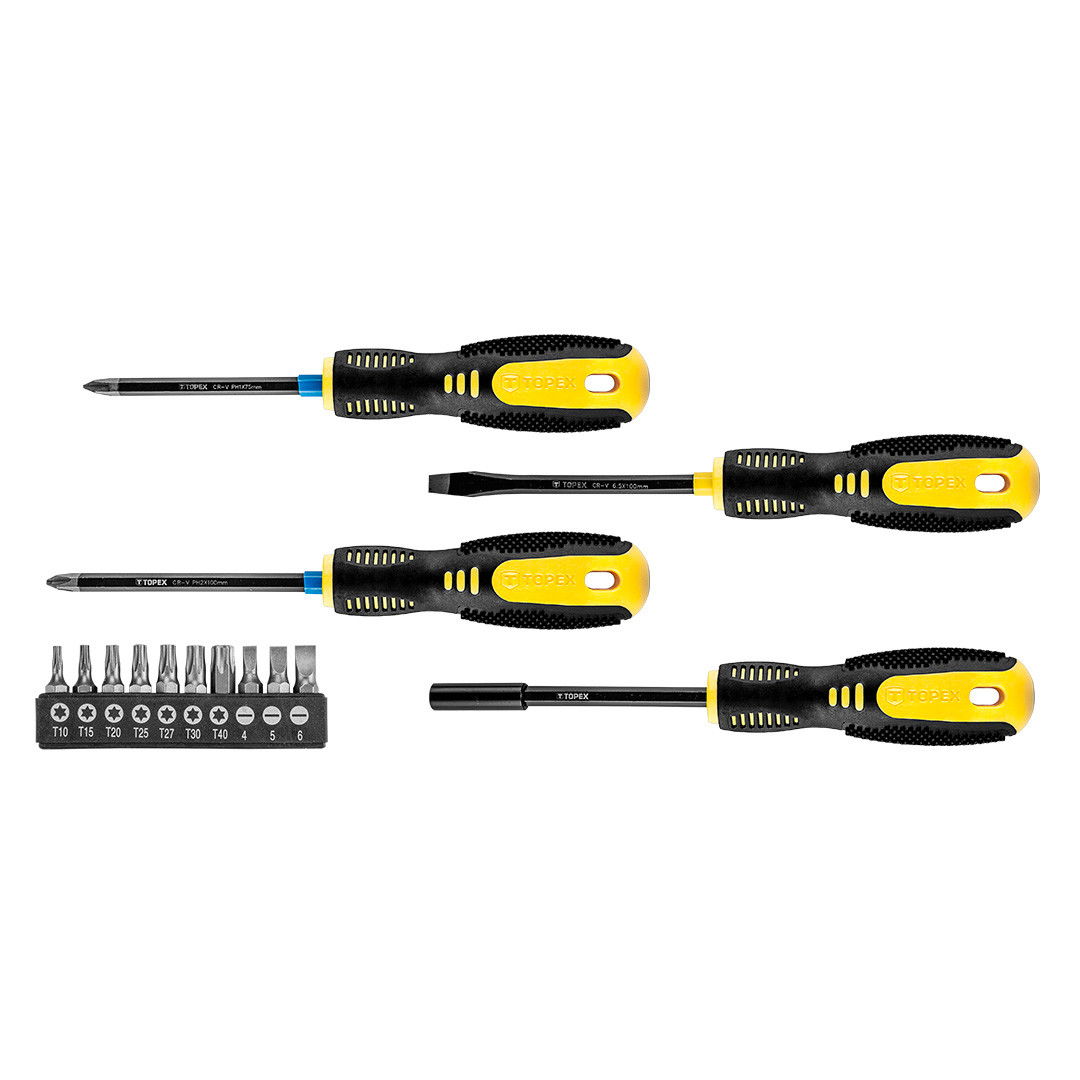 Topex 39D890 csavarhúzó és bitkészlet, CrV acél, 14 részes