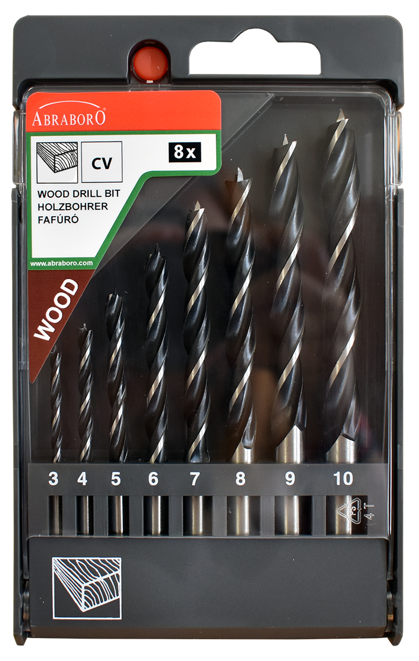 Abraboro 8 részes rövid fafúró készlet, műanyag dobozban