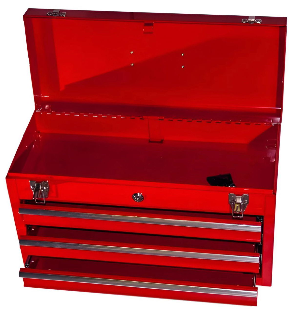 - Hordozható szerszámosláda, 3 fiókkal, 1 tároló rekesszel, fogantyúval, rögzítő kapoccsal és központi zárral.